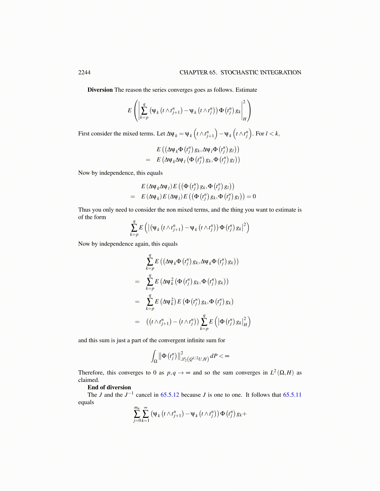 Proof: First of all, it is obvious that it is well defined in the sense that the same stochas-tic process is obtained from two different sequences of elementary functions. This followsfrom the isometry of Proposition 65.1.5 with U1 in place of U and Q1/2U in place of U0.Thus if {Ψn} and {Φn} are two sequences of elementary functions converging to Φ ◦ J−1