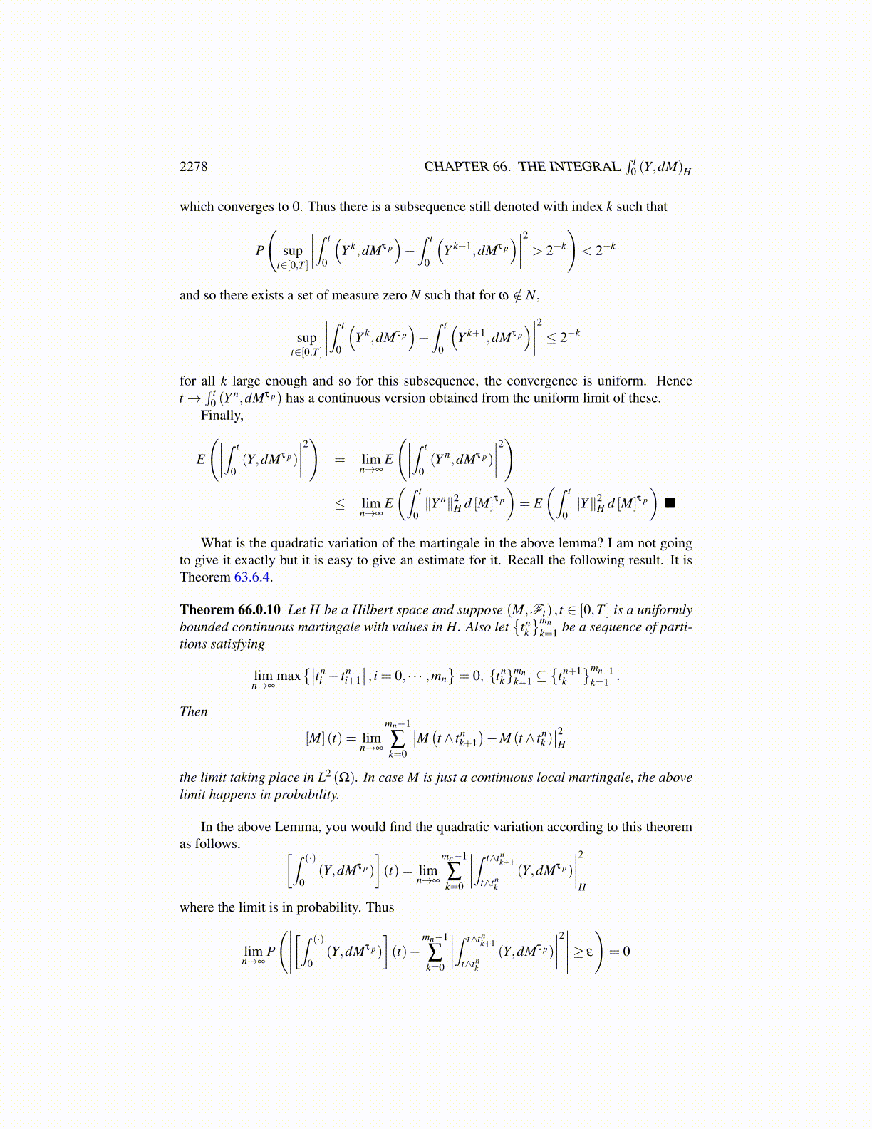 Then if Y ∈ L2 ([0,T ]×Ω,H) , and progressively measurable there are left step functionswhich converge to Y in L2 ([0,T ]×Ω,H) . Say d [Mτ p ] = k (t,ω)dm where k is bounded.Then