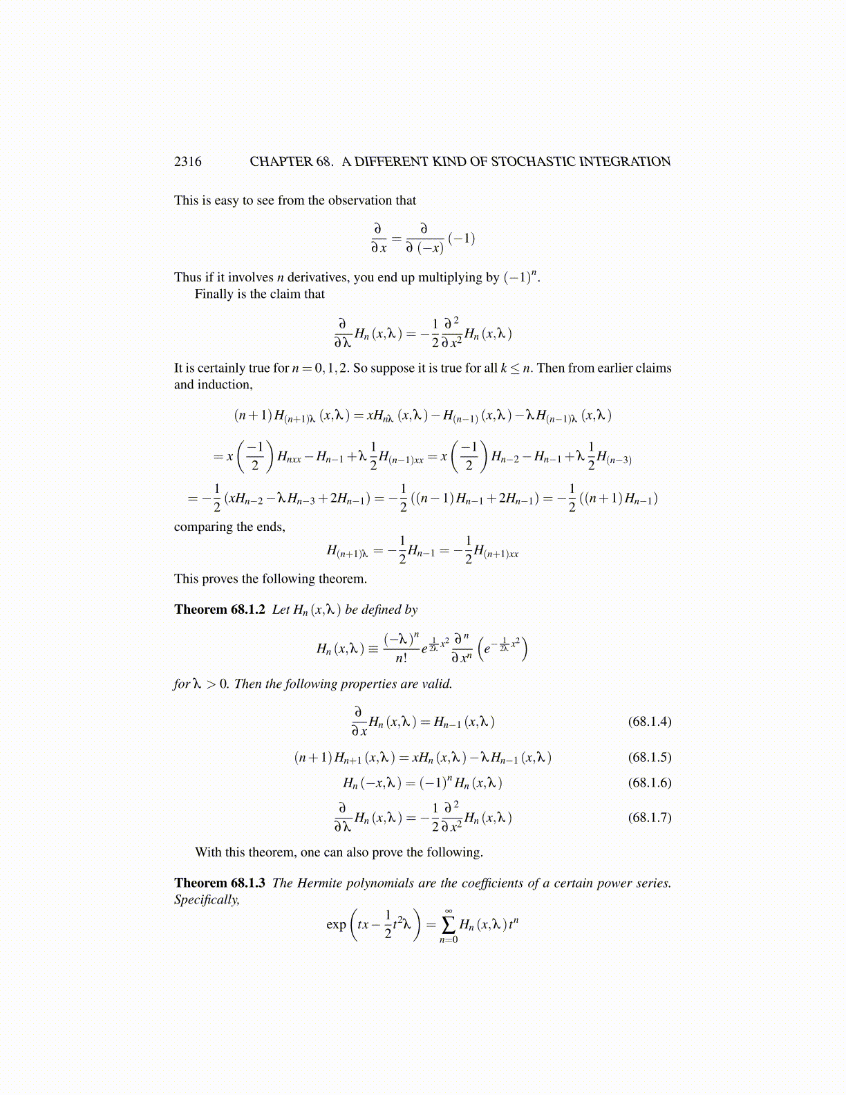 Definition 68.1.1 You can also consider Hermite polynomials which depend on λ . Theseare defined as follows: