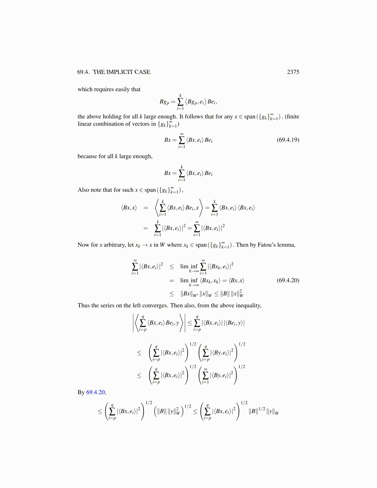 i=1 is actually a basis for BW .Proof: Let x ∈W . Let xr ∈ span(g1, · · · ,gr) ,r > nk such that limr→∞ xr = x in W . Then
