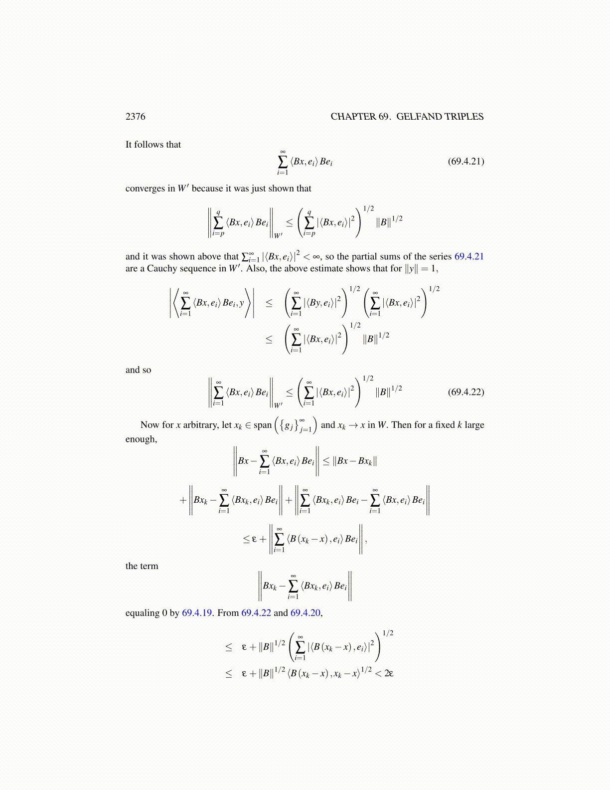 〉Either this equals 0 because p is never one of the nk or eventually it equals 0 for some kbecause gp = gnk for some nk and so, from the construction, gnk = gp ∈ span(e1, · · · ,ek)and therefore,