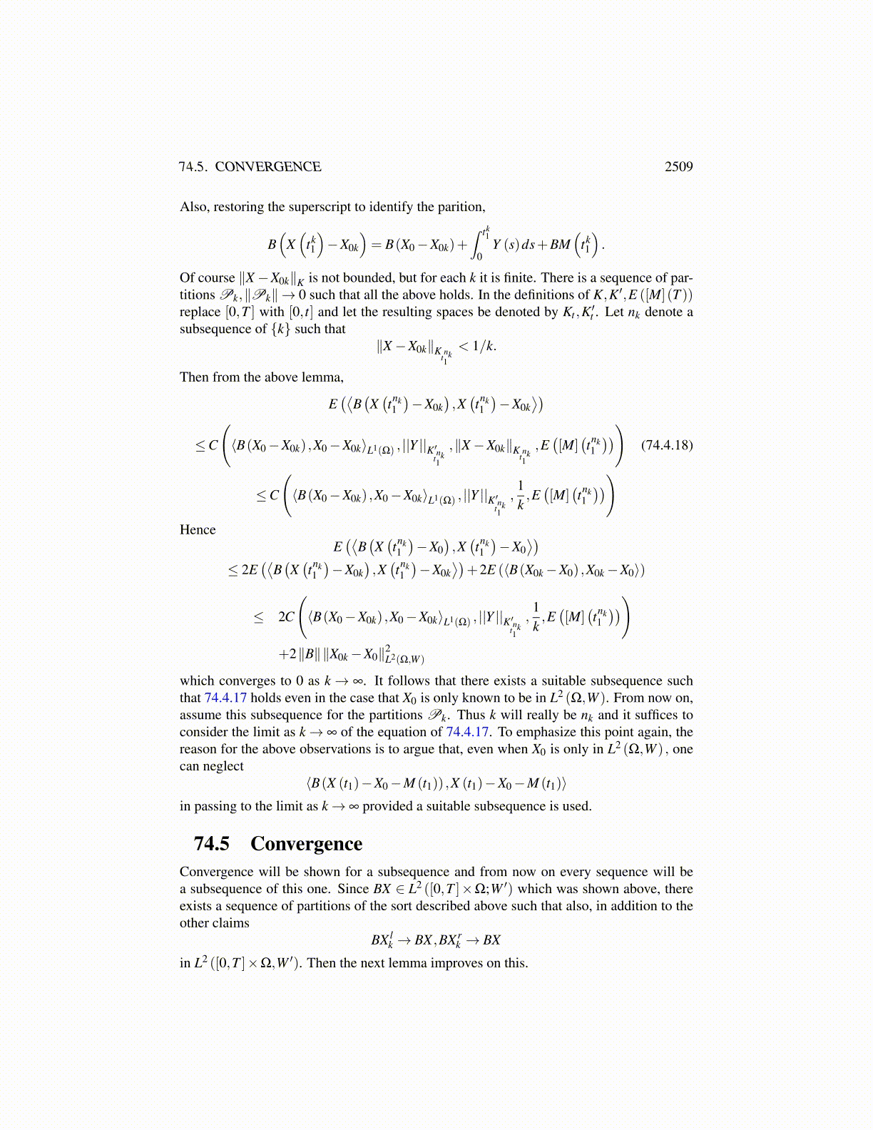 ω . Let s ∈ [0,T ] bearbitrary. I claim that if tn → s, tn ∈ D, it follows that BX (tn)→ BX (s) weakly in W ′. Ifnot, then there is a subsequence, still denoted as tn such that BX (tn)→ Y weakly in W ′ butY ̸= BX (s) . However, the continuity into V ′ means that for all v ∈V,