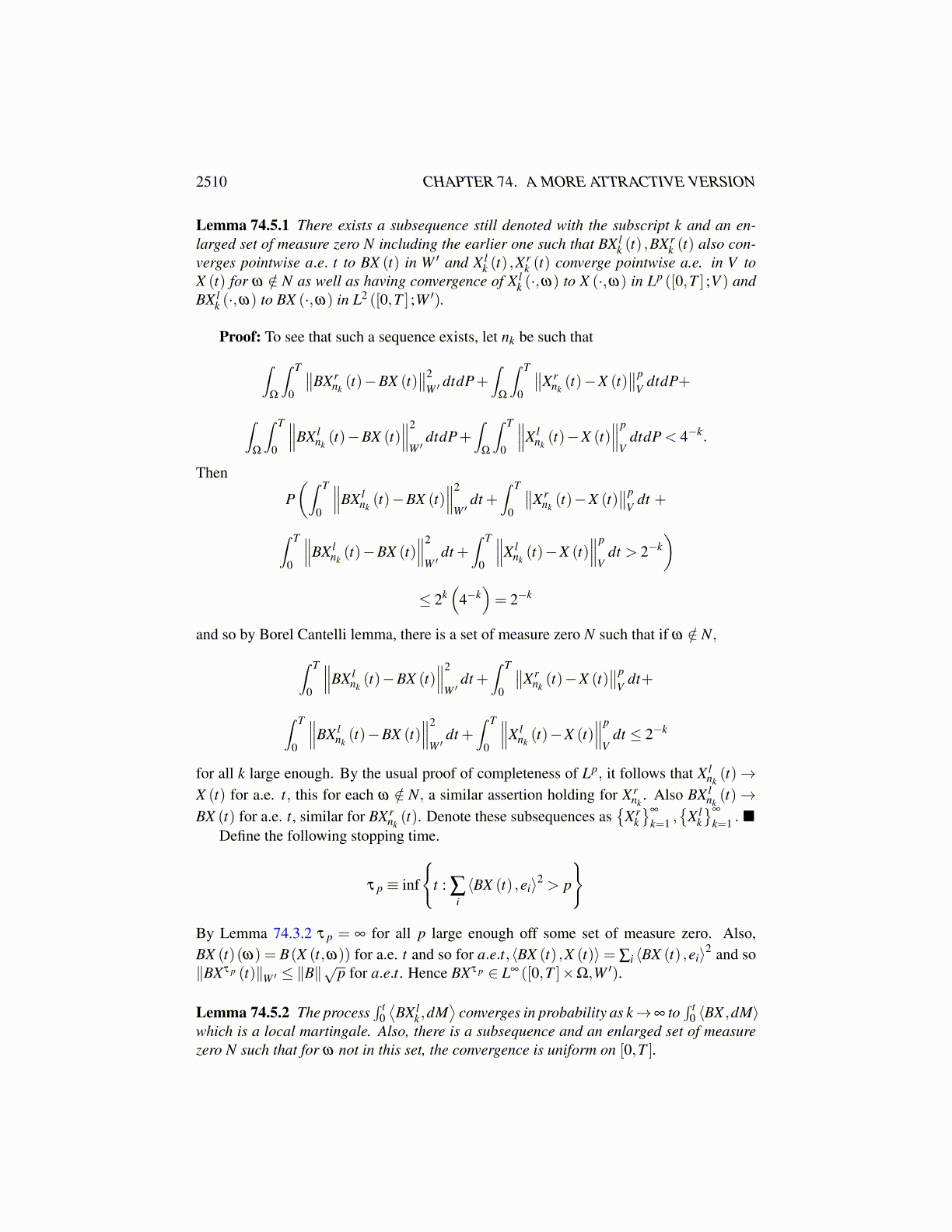 74.4 A Simplification Of The FormulaThis estimate in Lemma 74.3.2 also provides a way to simplify one of the formulas derivedearlier in the case that X0 ∈ Lp (Ω,V ) so that X−X0 ∈ Lp ([0,T ]×Ω,V ). Refer to 74.3.11.One term there is