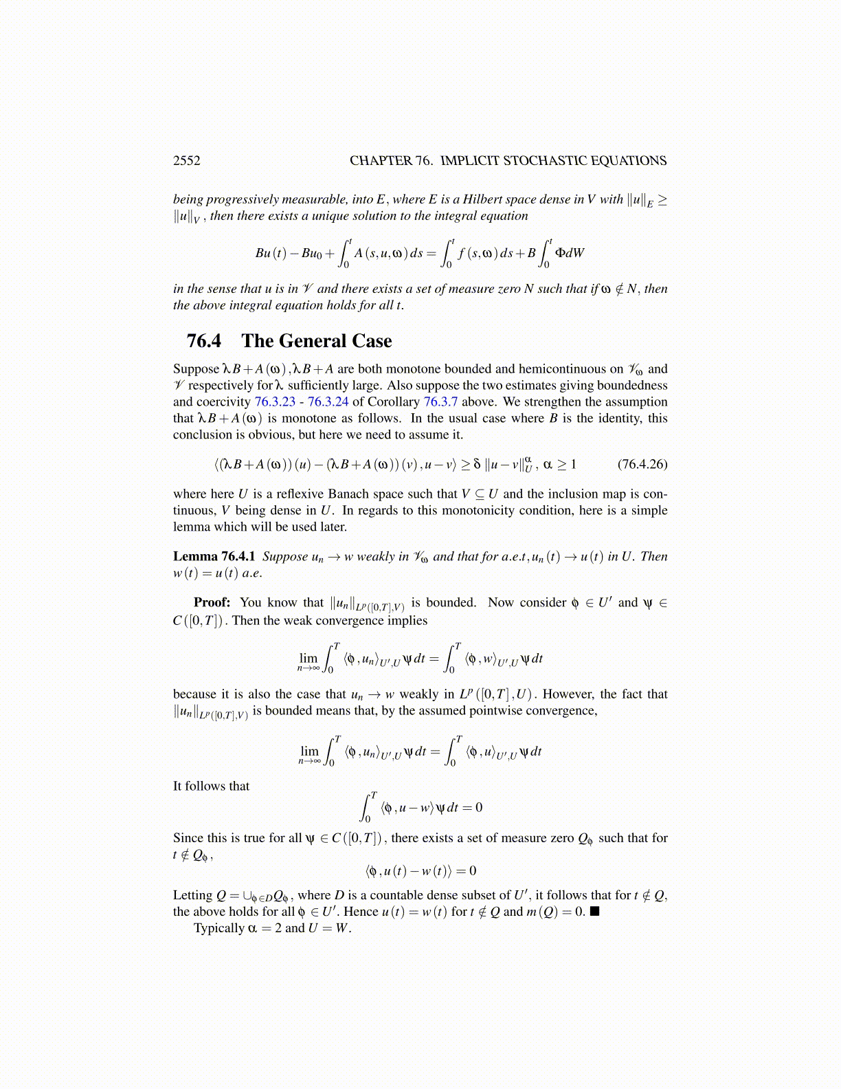 Thus the necessary uniqueness condition holds for the initial value problem for w andhence it follows from Proposition 76.3.6 that there exists a unique progressively measurablesolution to the initial value problem for w and hence a unique progressively measurablesolution to the above one for u.