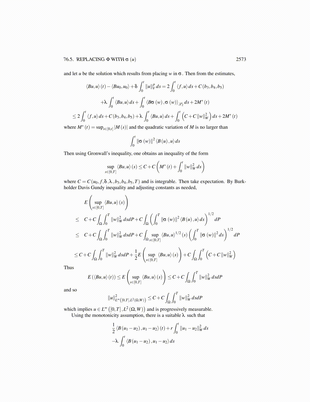 Therefore, there is a unique fixed point to this mapping which takes w∈W to u the solutionto the integral equation. We denote it as u. Thus u is progressively measurable and for ω
