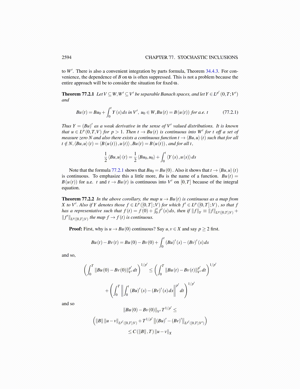 Example 76.7.3 Let u0 ∈ L2 (Ω,V ) where V is described above and let v0 ∈ L2 (Ω,W ) forW described above. Let both of these initial conditions be progressively measurable. Alsolet f ∈ V ′ and Φ ∈ L∞