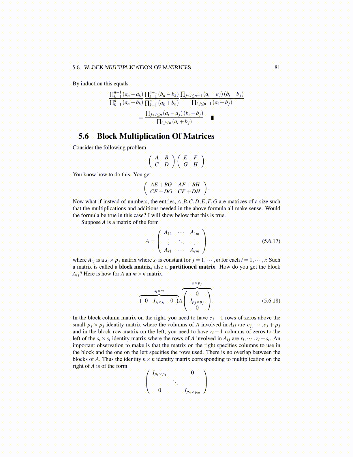 5.6. BLOCK MULTIPLICATION OF MATRICES 81