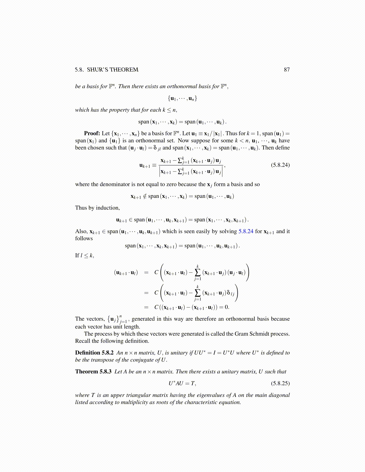 Also, xk+1 ∈ span(u1, · · · ,uk,uk+1) which is seen easily by solving 5.8.24 for xk+1 and itfollows