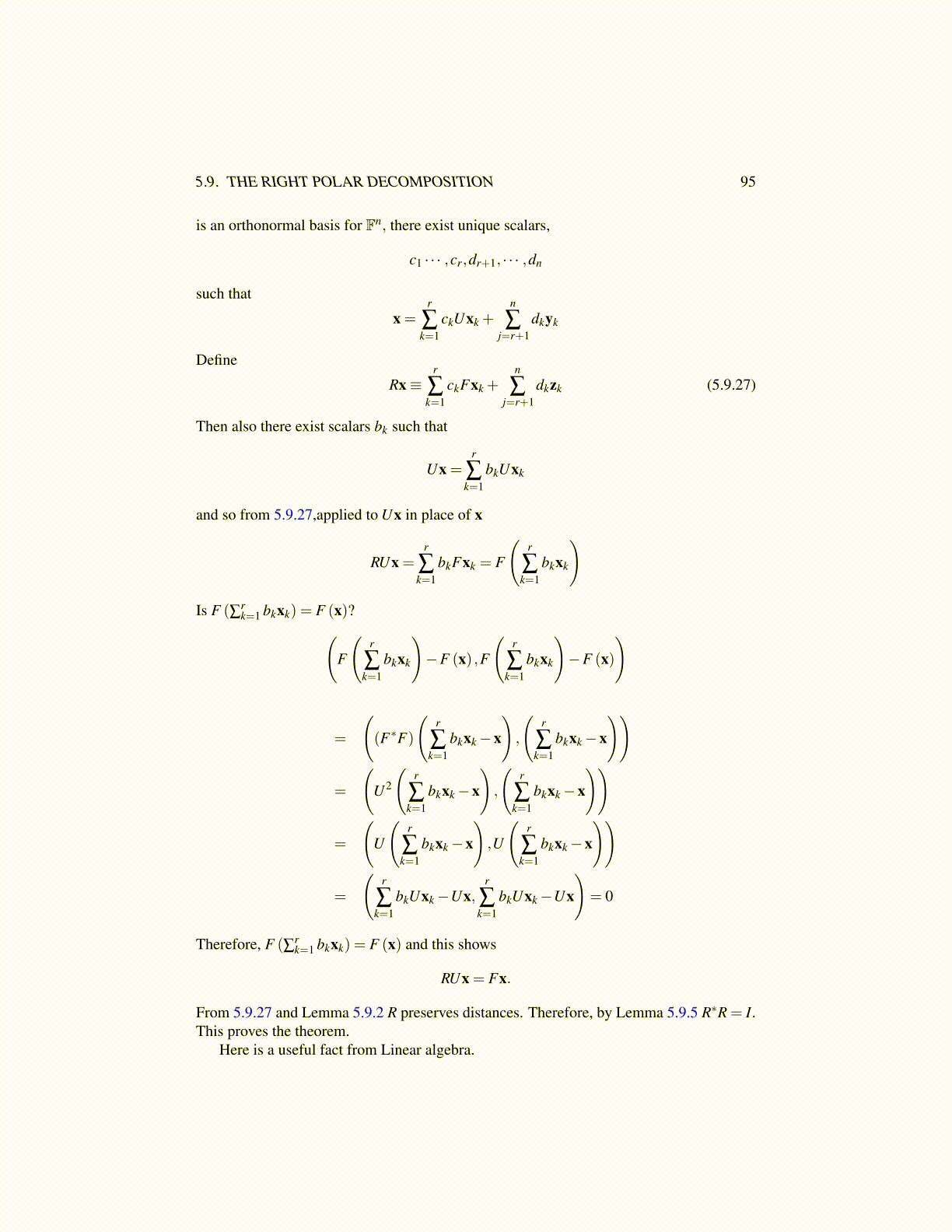 5.9. THE RIGHT POLAR DECOMPOSITION 95
